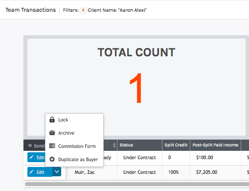 In your transactions (go to admin>transactions) find the transaction that just barely closed. If you hit the drop-down next to edit, you'll see the "commission form". Let's open that up.